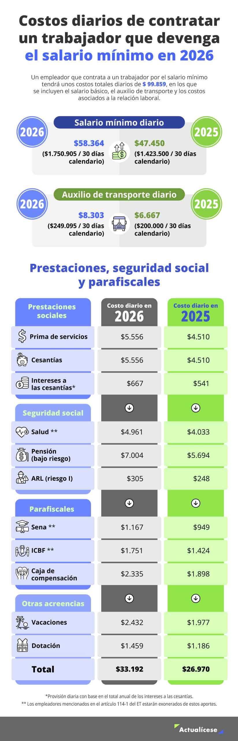 En conclusión, para el año 2026 la contratación de un trabajador del servicio doméstico (jardinero) con riesgo laboral tipo III, que labora 2 días a la semana y que recibe el salario mínimo proporcional al tiempo trabajado, cuesta al empleador aproximadamente $956.059 mensuales.