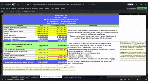 Ten en cuenta que este formato permite la manipulación de variables y escenarios, en consecuencia, podrás estudiar diversas situaciones modificando los valores de las celdas.