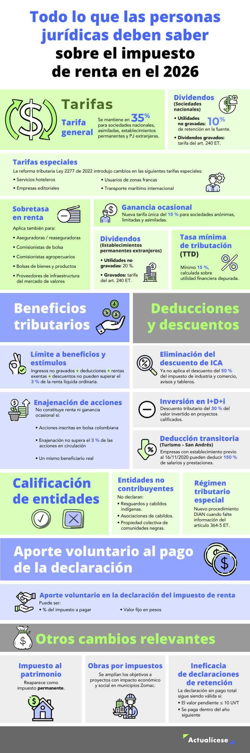 La reforma tributaria –Ley 2277 de 2022– introdujo cambios significativos en varias disposiciones del tratamiento de los descuentos y otros beneficios tributarios. Estos cambios deben ser considerados al momento de presentar la declaración de renta de personas jurídicas correspondiente al año 2025, que se realiza en el año 2026.