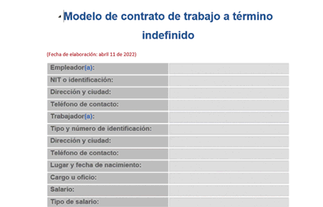 Cabe anotar que el diseño, los datos o comentarios bajo los cuales se elaboraron estos formatos de contrato de trabajo se entregan a título de guía y hacen parte de la interpretación de Actualícese. Será el usuario quien deba atender las instrucciones del Ministerio del Trabajo, estudiar las normas requeridas, preparar y emitir la información a la que haya lugar.