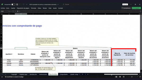 Liquidador automatizado de la prima de servicios con comprobante de pago