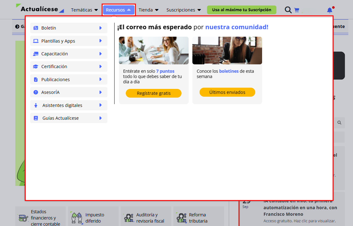 Además de todo lo que ya tienes, cada semana Actualícese suma recursos nuevos pensados en tu día a día como profesional: herramientas, contenidos, eventos y más.