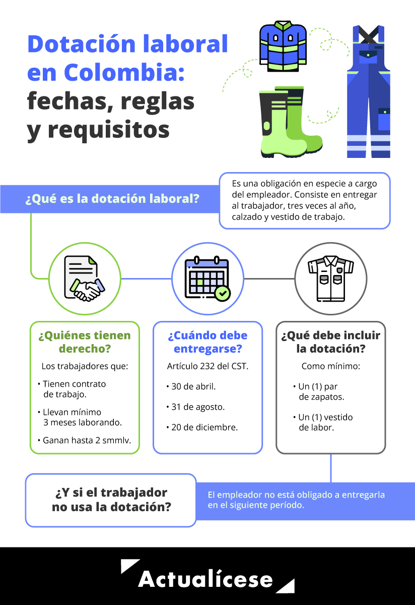 El artículo 232 del CST advierte que todos los empleadores están obligados a proveer la dotación en las siguientes fechas: