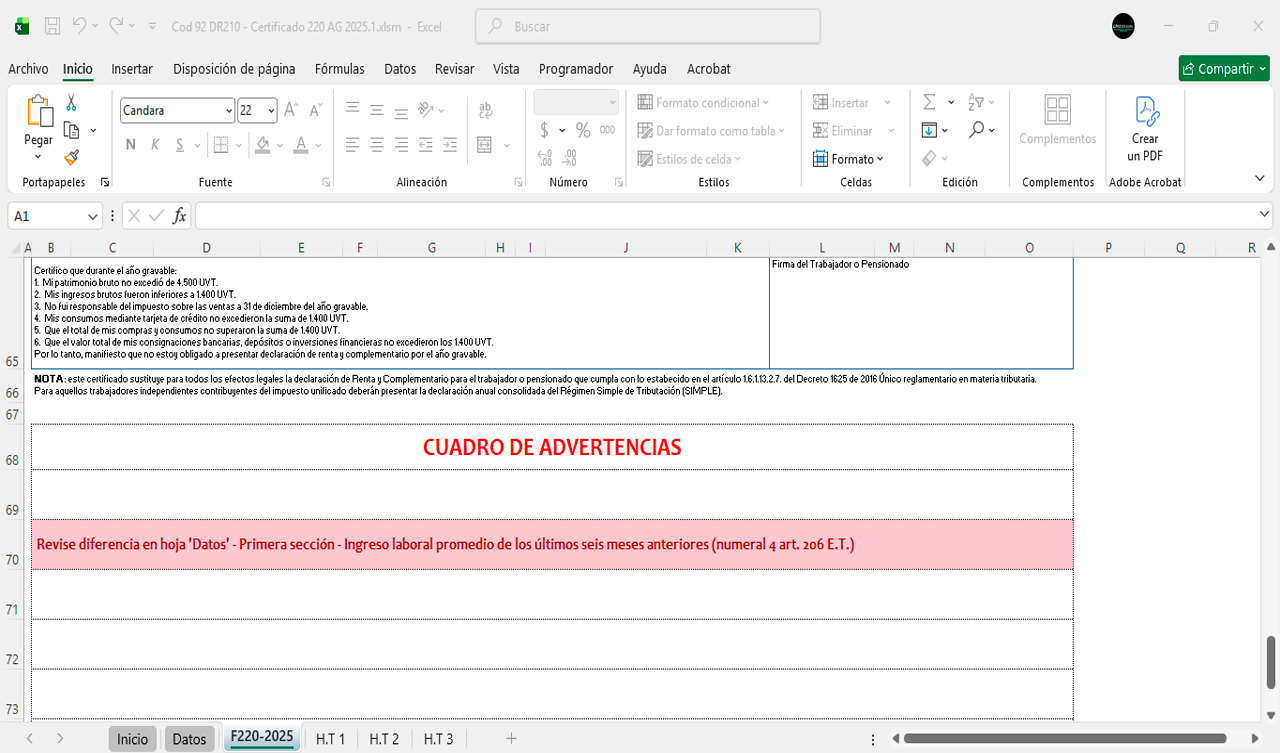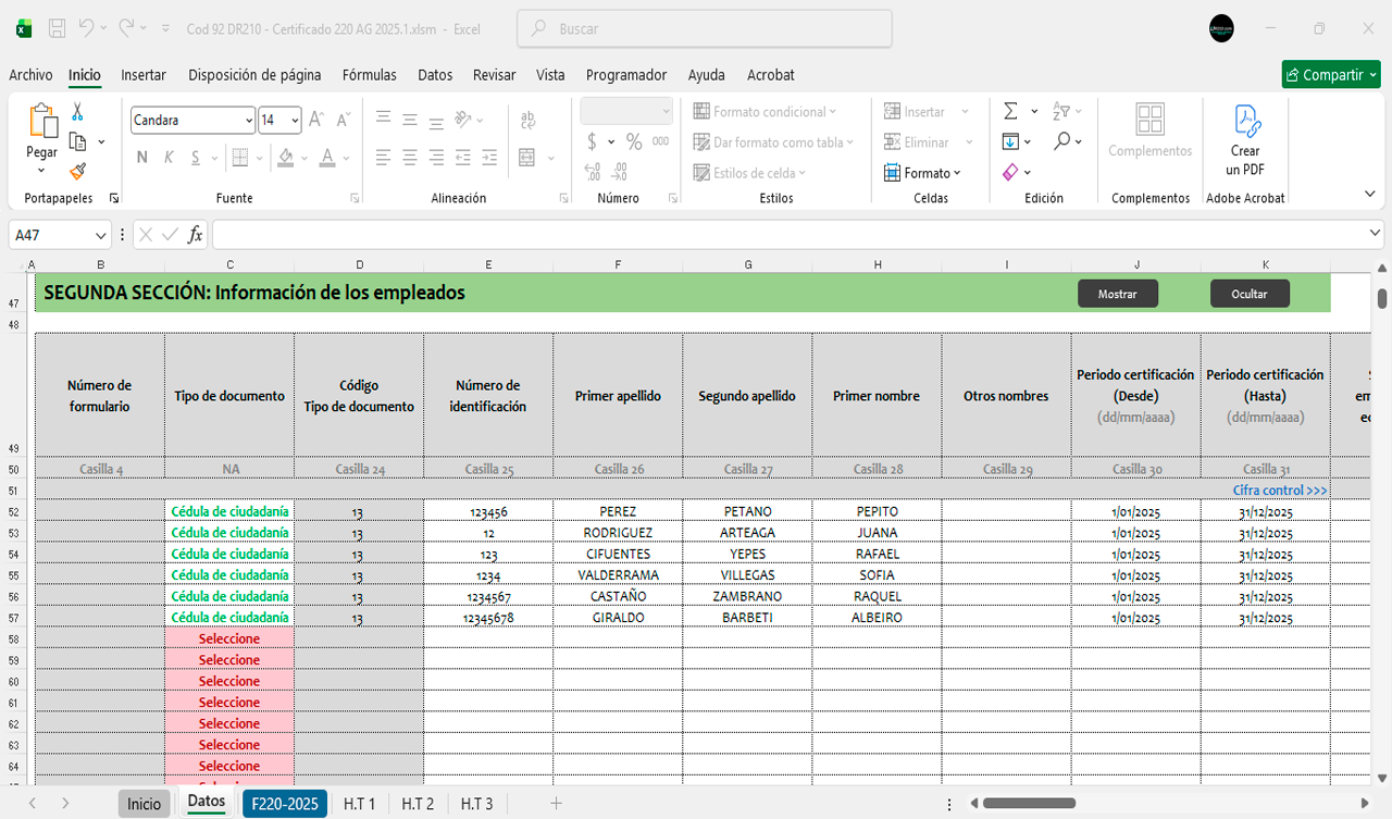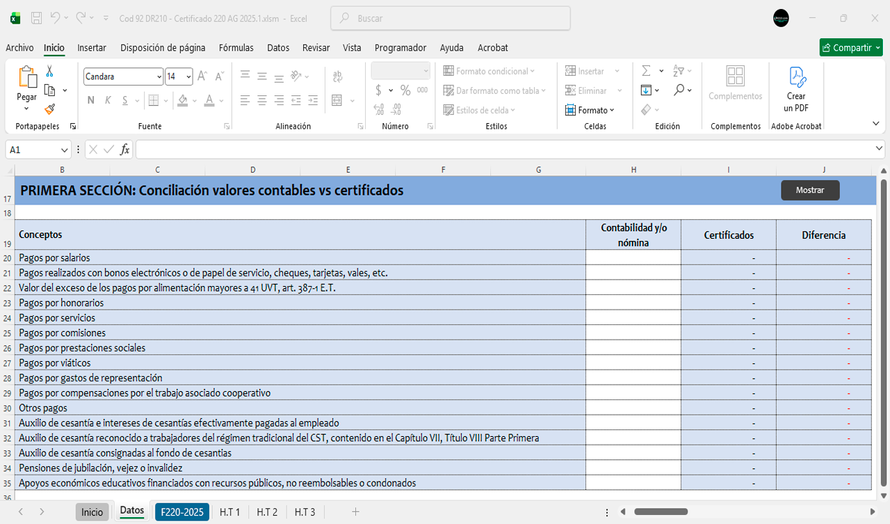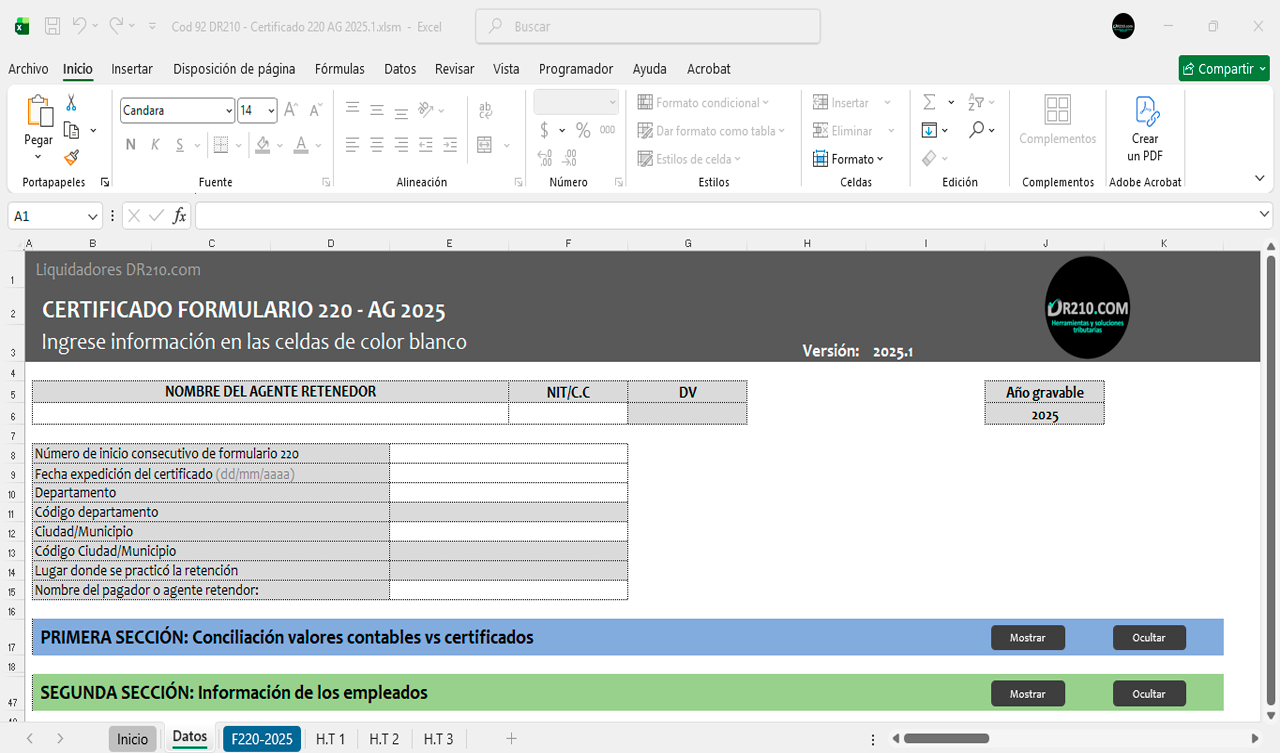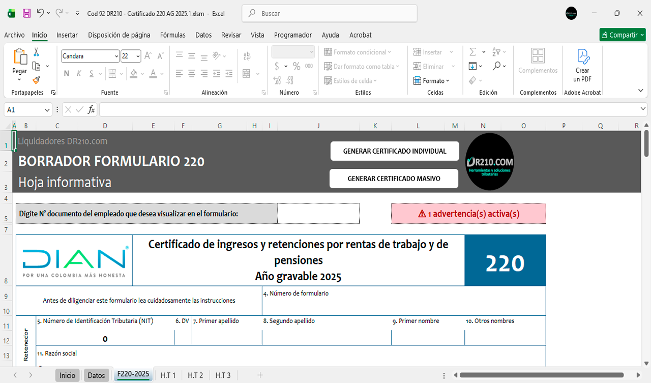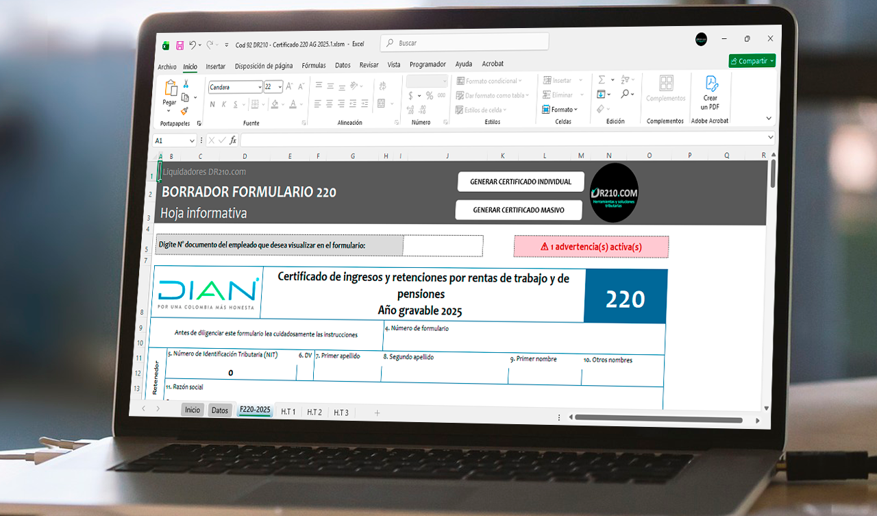 Herramienta desarrollada para la elaboración, control y exportación del Certificado de Ingresos y Retenciones – Formulario 220, aplicable al AG 2025.