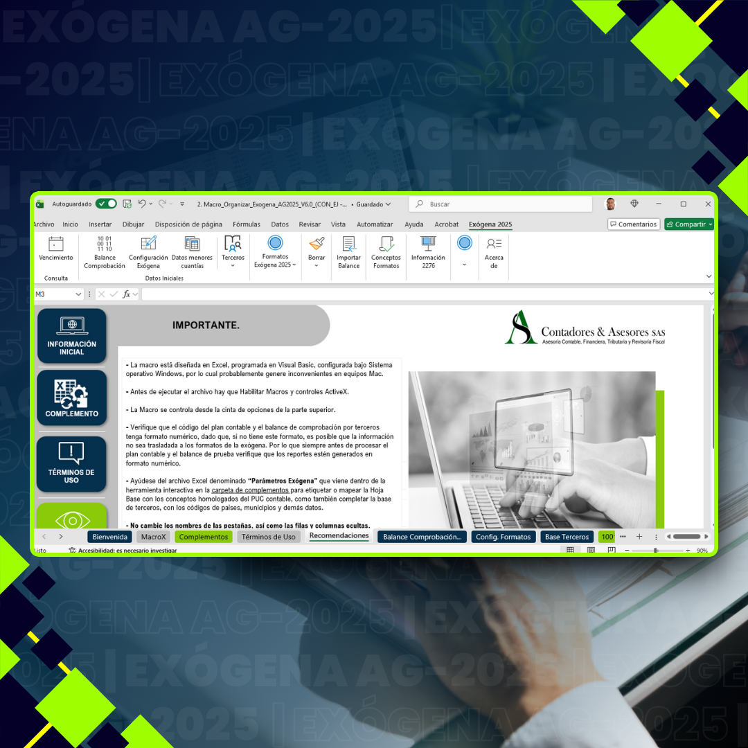 Para el correcto funcionamiento de la Macro de Información Exógena AG 2025, el usuario debe contar con los siguientes requisitos técnicos mínimos: