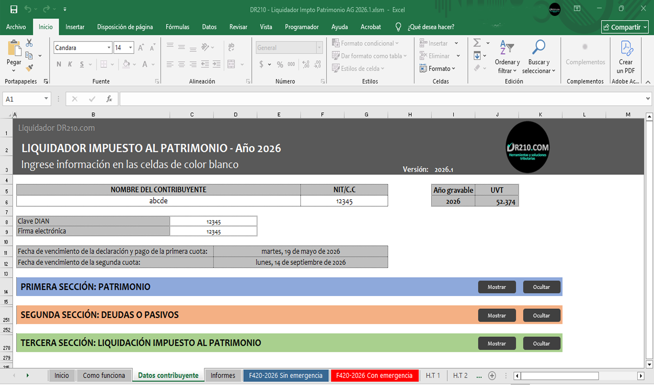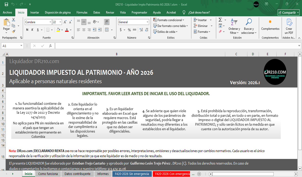 Nota: La herramienta será actualizada gratuitamente en caso de existir modificaciones al Formulario 420 por el año 2026.