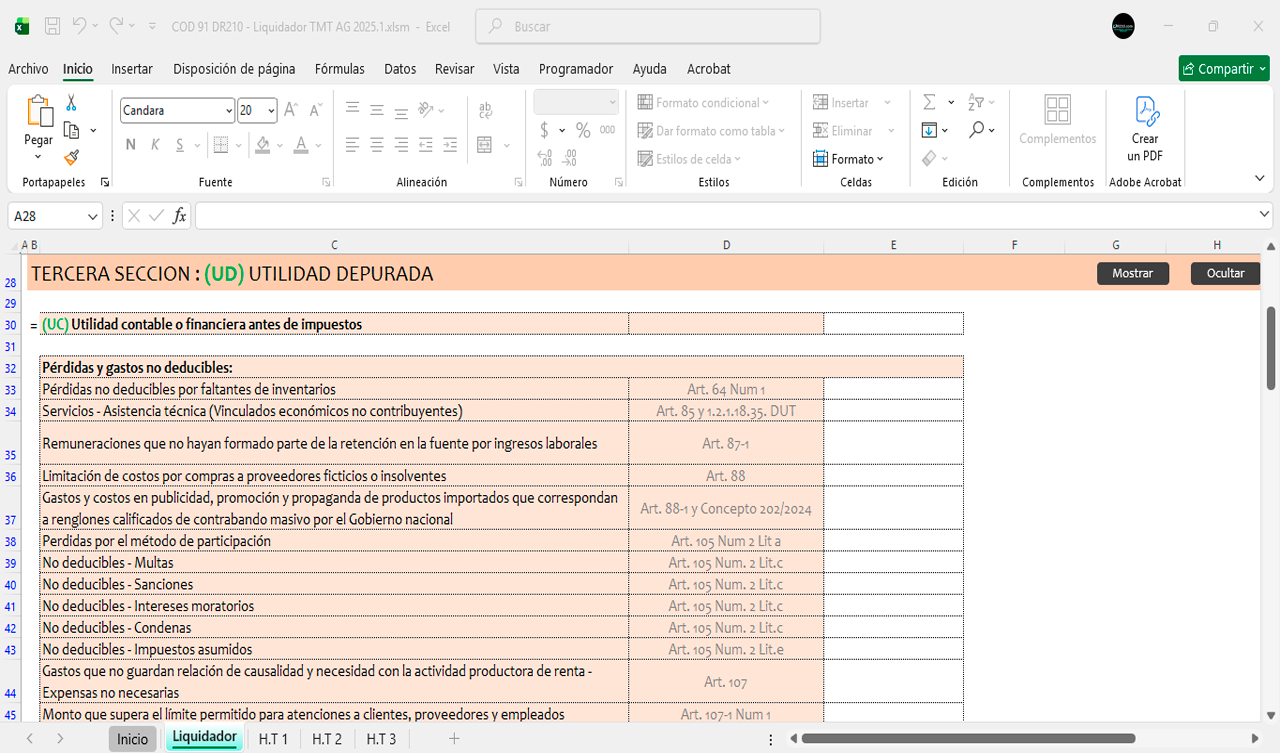 Nota: Tener presente que no es compatible con OpenOffice, LibreOffice, Google Sheets, Excel Online, One Drive u cualquier otro software diferente a Microsoft Excel, dado que nuestros liquidadores contienes macros, los cuales funcionan exclusivamente en Microsoft Excel.