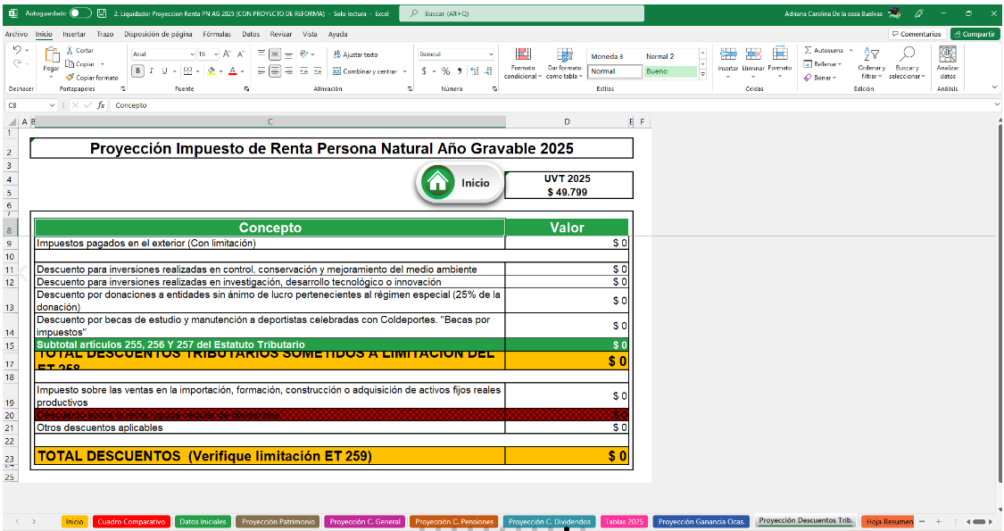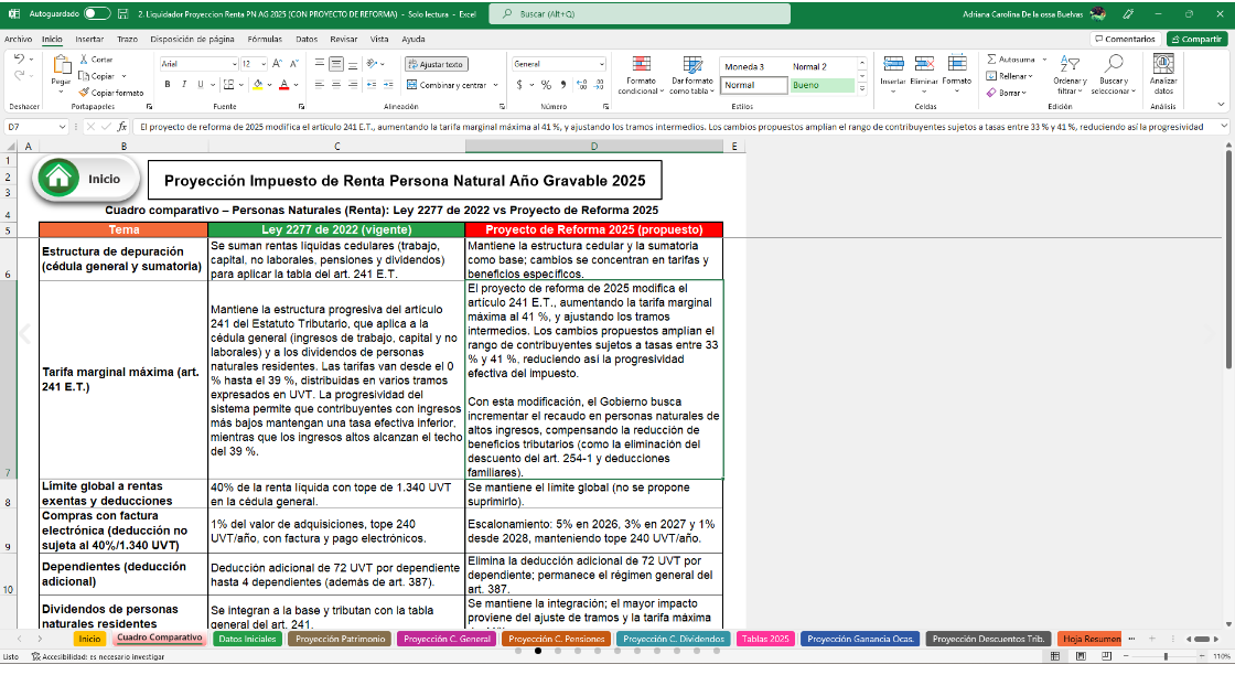 Empieza la parte final del año, momento estratégico en que el contribuyente planifica y analiza su situación impositiva, con el propósito de optimizar el impuesto de renta a futuro. Mediante este liquidador proyectado, se podrá estimar el impuesto de renta de las personas naturales para el año gravable 2025 (presentación en 2026) de forma realista, aplicando la normativa vigente —incluyendo la Ley 2277 de 2022 y la interpretación doctrinal consolidada